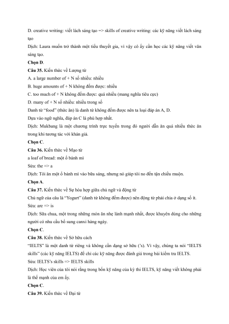 Câu 34. Laura wants to become a novelist, so she needs to learn skills of _______. A. writing to create.