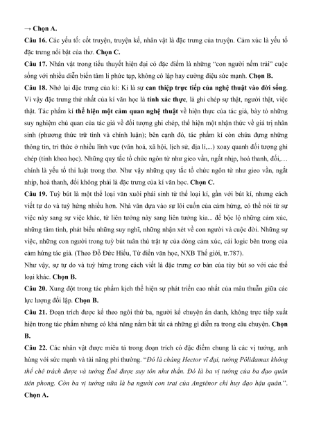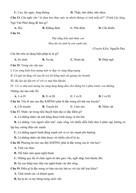 Câu 18. Phương án nào sau đây KHÔNG phải là đặc trưng của kí văn học? A. Tính xác thực.