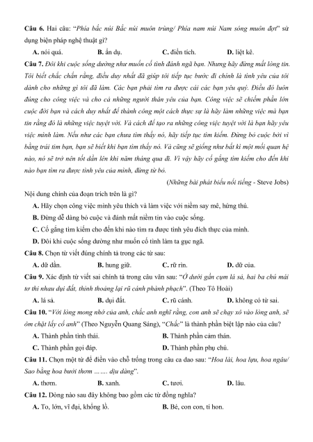 PHẦN 1: SỬ DỤNG NGÔN NGỮ 1.1. TIẾNG VIỆT (30 CÂU)
