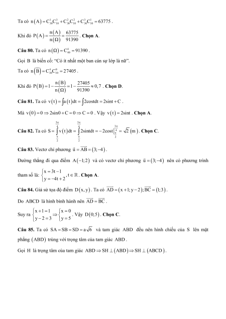Câu 78. Số cách chọn 4 bạn vào ban cán sự lớp là: A. 27 405. B. 210. C. 91 390. D. 4 845.