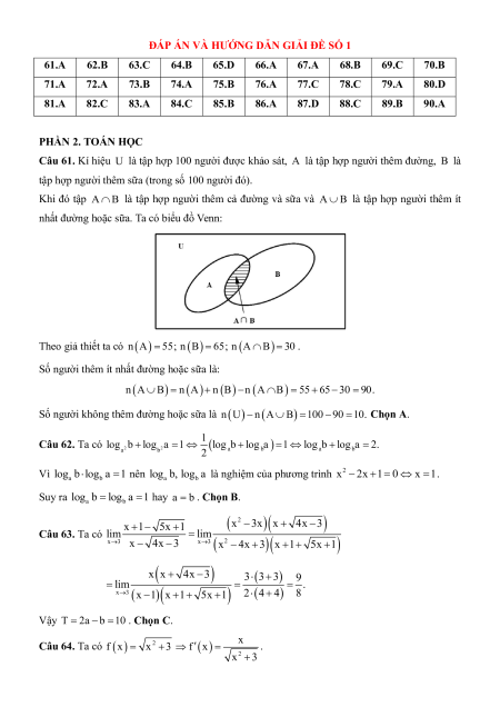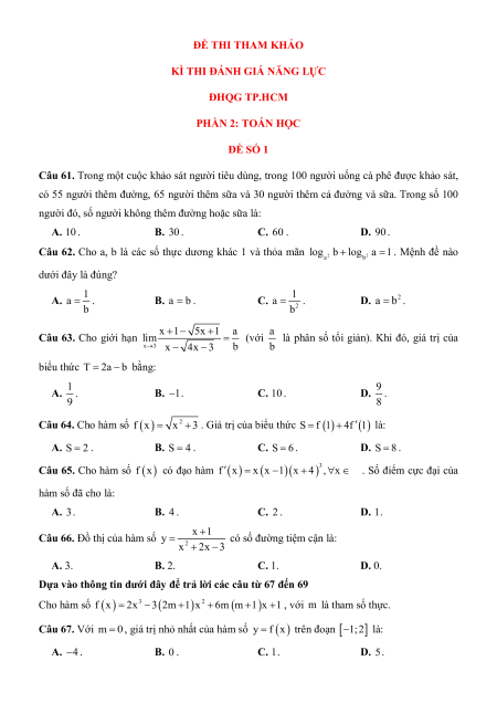 KÌ THI ĐÁNH GIÁ NĂNG LỰC ĐHQG TP.HCM PHẦN 2: TOÁN HỌC ĐỀ SỐ 1
