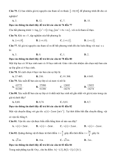 Câu 80. Xác suất để ban cán sự lớp có ít nhất một học sinh nữ gần nhất với giá trị nào trong các giá trị dưới đây? A. 0,68. B. 0,74. C. 0,81. D. 0,7.