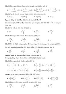 Câu 89. Tọa độ điểm M thỏa mãn MA 2MB MC 0 là: A. 3 M 3;1; . B. 1 3 M 3; ; . C. 1 M 3; ;0 . D. 1 1 3 M ; ; . 2 2 2 2 2 2 2