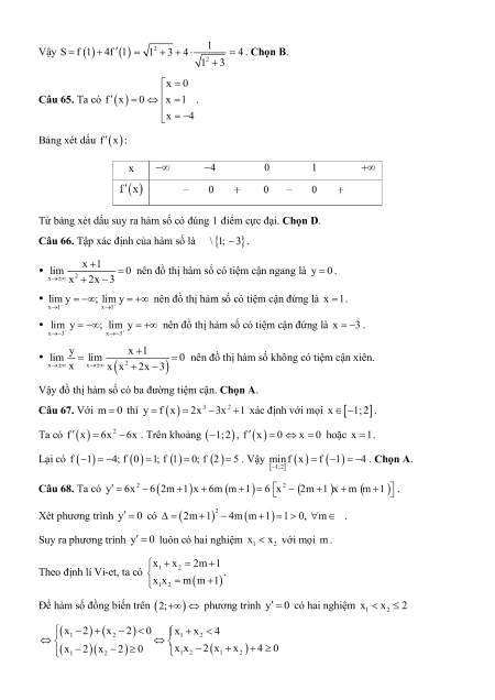 Câu 67. Với m 0 , giá trị nhỏ nhất của hàm số y f x trên đoạn 1;2 là: A. 4 . B. 0 . C. 1. D. 5.