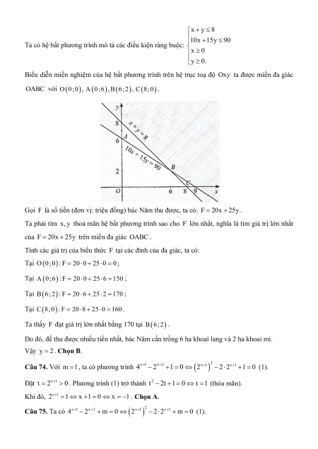 Câu 73. Để thu được nhiều tiền nhất, bác Năm đã trồng x hecta khoai lang và y hecta khoai