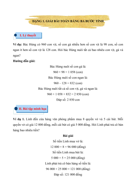 DẠNG 1. GIẢI BÀI TOÁN BẰNG BA BƯỚC TÍNH I. Lý thuyết