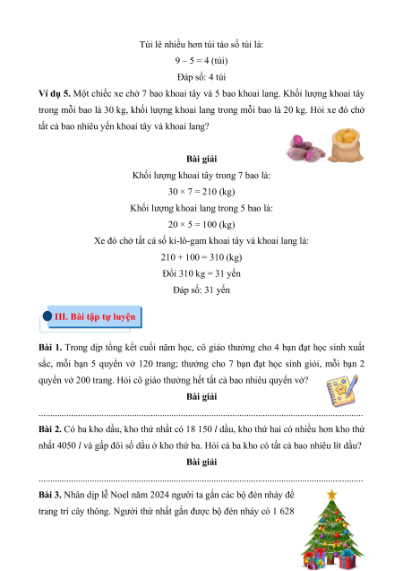 Ví dụ 5. Một chiếc xe chở 7 bao khoai tây và 5 bao khoai lang. Khối lượng khoai tây