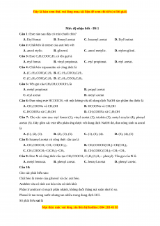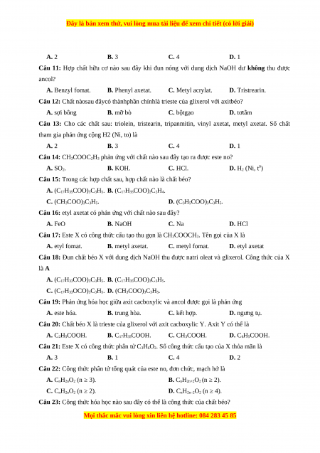 Câu 13: Cho các chất sau: triolein, tristearin, tripanmitin, vinyl axetat, metyl axetat. Số chất