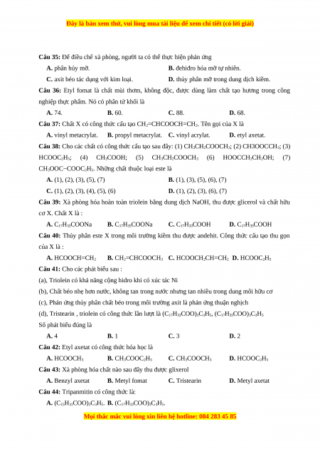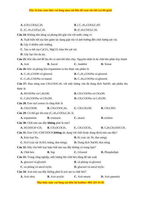 Câu 33: Trong công nghiệp, một lượng lớn chất béo dùng để sản xuất