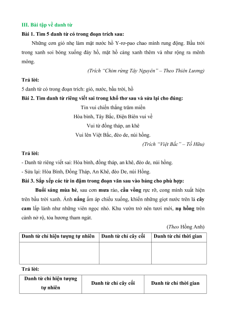 Danh từ chỉ hiện tượng tự nhiên Danh từ chỉ cây cối