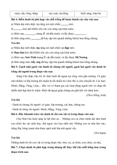 Bài 7. Chọn danh từ phù hợp trong khung để thay thế cho mỗi bông hoa trong đoạn trích sau: