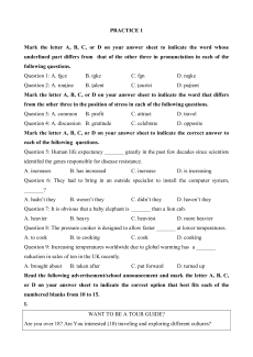 Mark the letter A, B, C, or D on your answer sheet to indicate the correct answer to
