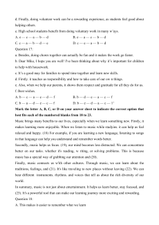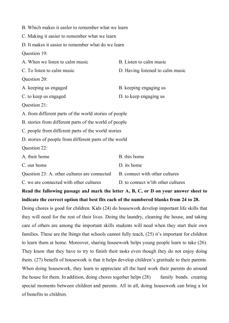 D. Having listened to calm music Question 20: A. keeping us engaged B. keeping engaging us C. to keep us engaged D. to keep engaging us Question 21: