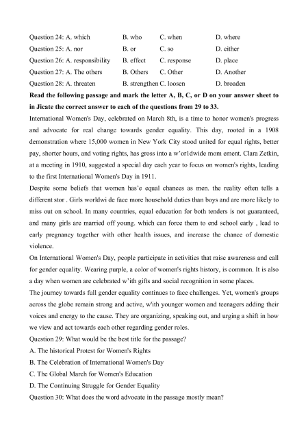 indicate the correct option that best fits each of the numbered blanks from 24 to 28.