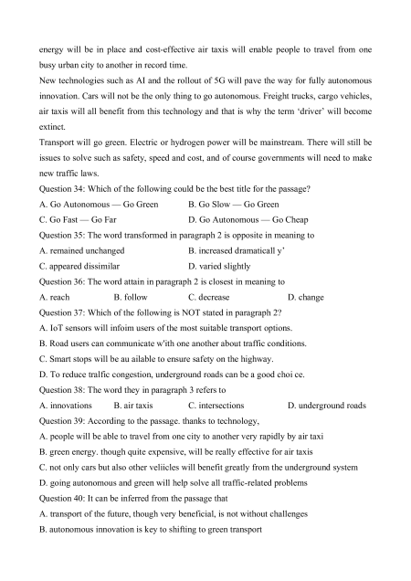 Read the fallowing passage anJ mark the letter A, B, C, or D on your answer sheet to