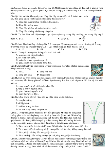 Câu 11. Tại thời điểm suất điện động đạt giá trị cực đại trong khung dây, từ thông qua khung dây có giá BS
