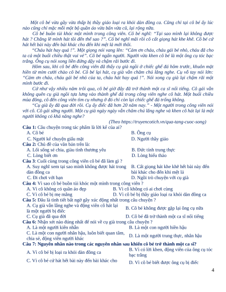 Câu 1: Câu chuyện trong tác phẩm là lời kể của ai? A. Cô bé B. Ông cụ