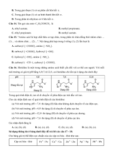 Câu 15. "Amino acid là hợp chất hữu cơ tạp chức, trong phân tử chứa đồng thời nhóm chức . .