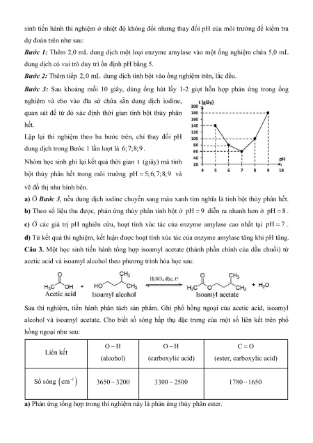 Câu 2. Enzyme amylase là một protein có khả năng xúc tác cho phản ứng thủy phân tinh bột.