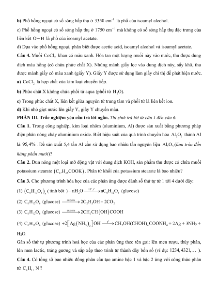 Câu 2. Thành phần chính của baking soda là NaHCO . Tên của hợp chất này là 3