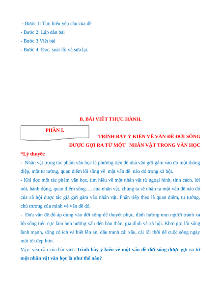 +Nghị luận về một vấn đề được gợi ra từ nhân vật, câu chuyện.