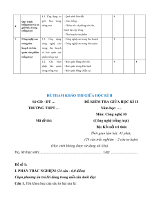 ĐỀ KIỂM TRA GIỮA HỌC KÌ II TRƯỜNG THPT … Năm học: …. Môn: Công nghệ 10 Mã đề thi: