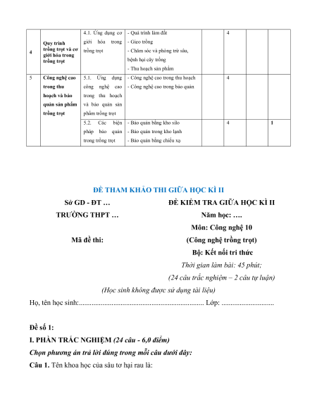 - Tailieugiaovien.com.vn giới thiệu bộ 5 đề giữa kì 2 gồm đầy đủ ma trận và lời giải chi tiết môn Công ngệ trồng trọt 10 Kết nối tri thức mới nhất nhằm giúp Giáo viên có thêm tài liệu tham khảo ra đề thi Công nghệ lớp 10.