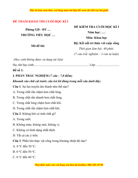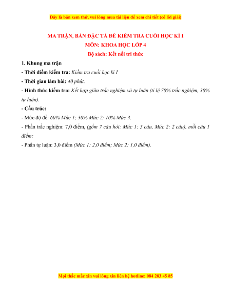 - Tailieugiaovien.com.vn giới thiệu 5 đề cuối kì 1 gồm đầy đủ ma trận và lời giải chi tiết môn Khoa học lớp 4 Kết nối tri thức mới nhất nhằm giúp Giáo viên có thêm tài liệu tham khảo ra đề thi Khoa học lớp 4.