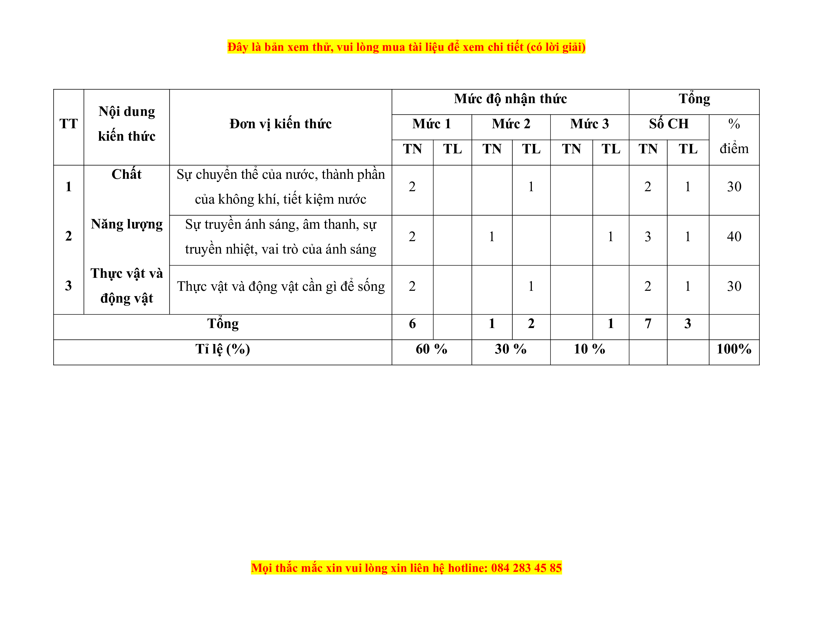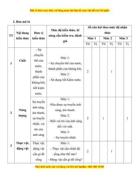 - Mức độ đề: 60% Mức 1; 30% Mức 2; 10% Mức 3.