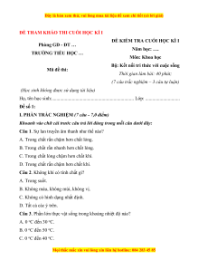 - Thời điểm kiểm tra: Kiểm tra cuối học kì I