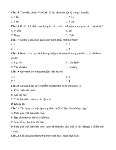 Câu 14. Theo tiêu chuẩn VietGAP, sau mỗi đợt nuôi cần để trống chuồng nuôi bao lâu? A. Ít nhất 7 ngày B. Nhiều nhất 7 ngày C. Trên 10 ngày D. Dưới 10 ngày