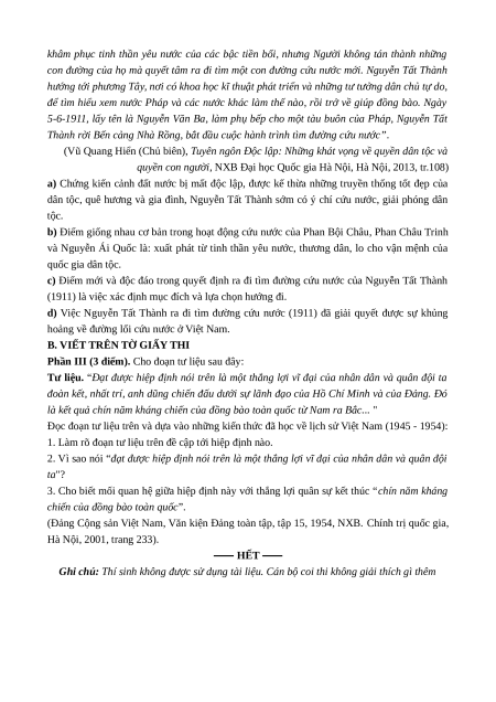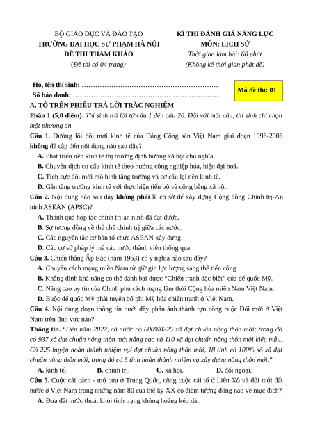 TRƯỜNG ĐẠI HỌC SƯ PHẠM HÀ NỘI MÔN: LỊCH SỬ ĐỀ THI THAM KHẢO