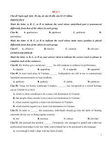 differently from that of the others in each group. Câu 47. A. offensive B. historic C. colonial D. relevant LEXICO-GRAMMAR