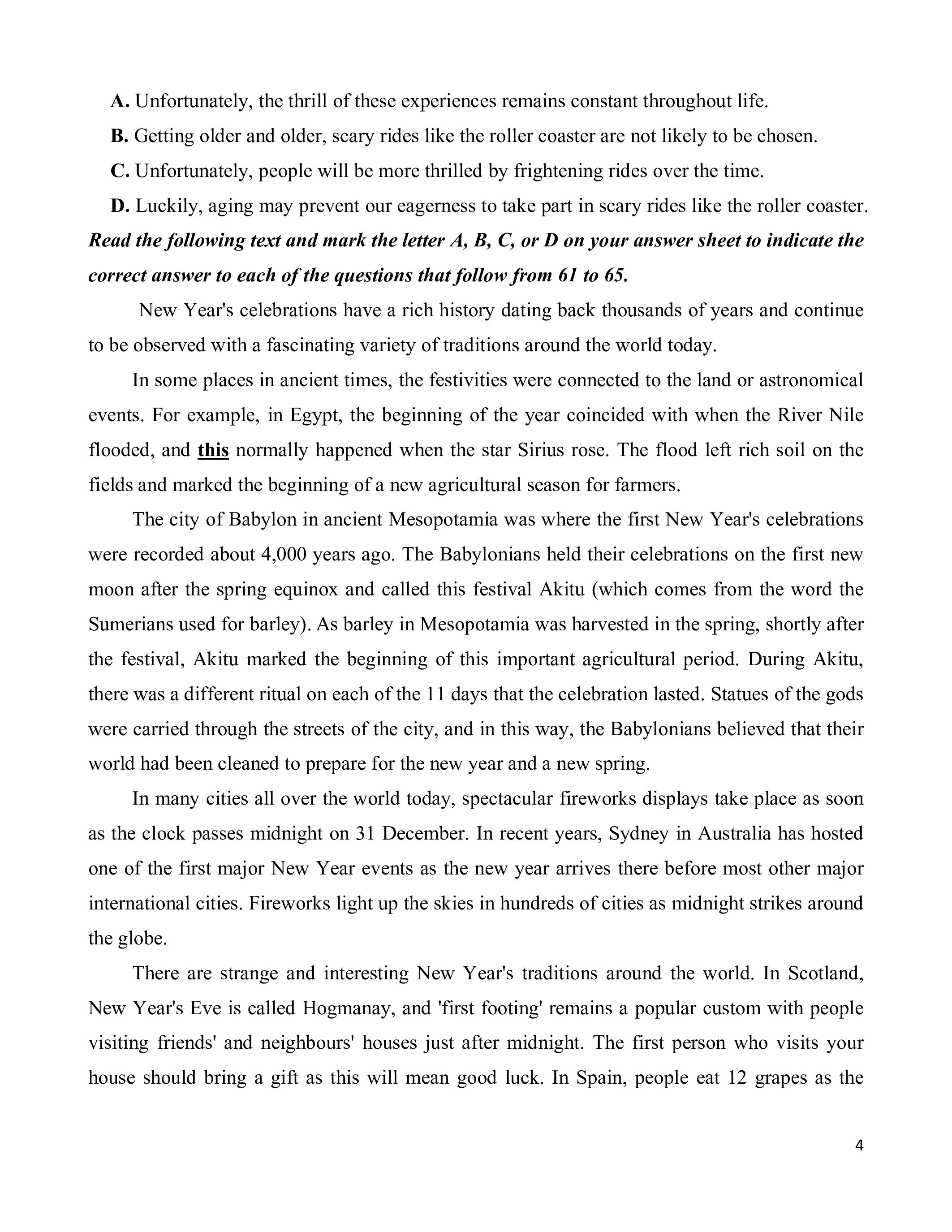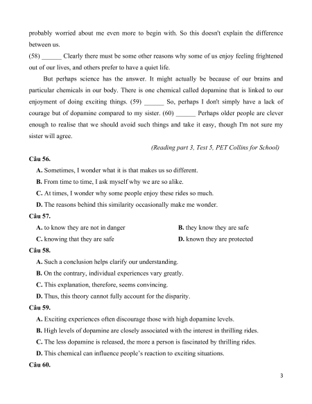 D. This chemical can influence people’s reaction to exciting situations. Câu 60. 3
