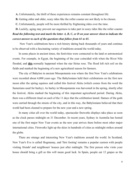 Read the following text and mark the letter A, B, C, or D on your answer sheet to indicate the