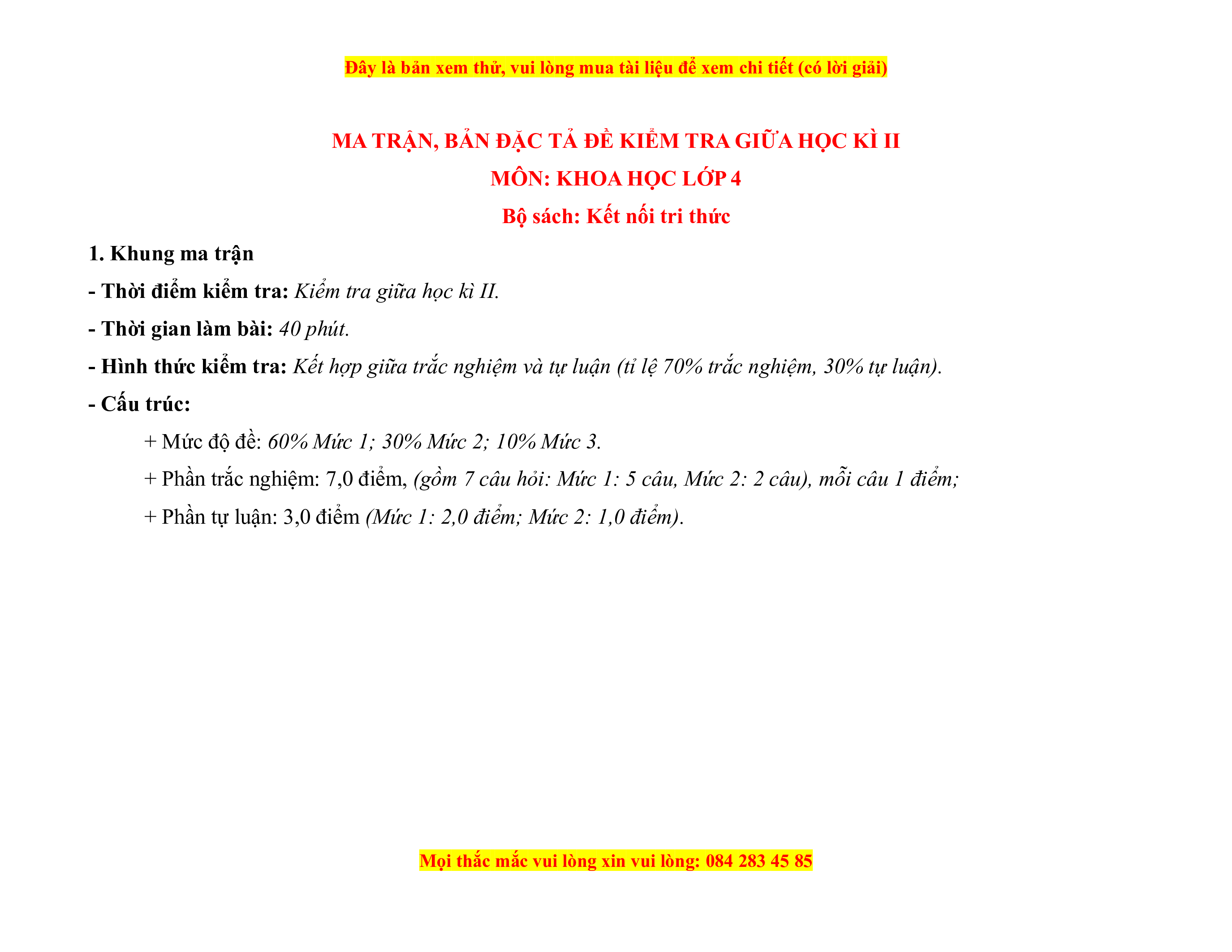 - Tailieugiaovien.com.vn giới thiệu 5 đề giữa kì 2 gồm đầy đủ ma trận và lời giải chi tiết môn Khoa học lớp 4 Kết nối tri thức mới nhất năm 2026 nhằm giúp Giáo viên có thêm tài liệu tham khảo ra đề thi Khoa học lớp 4.