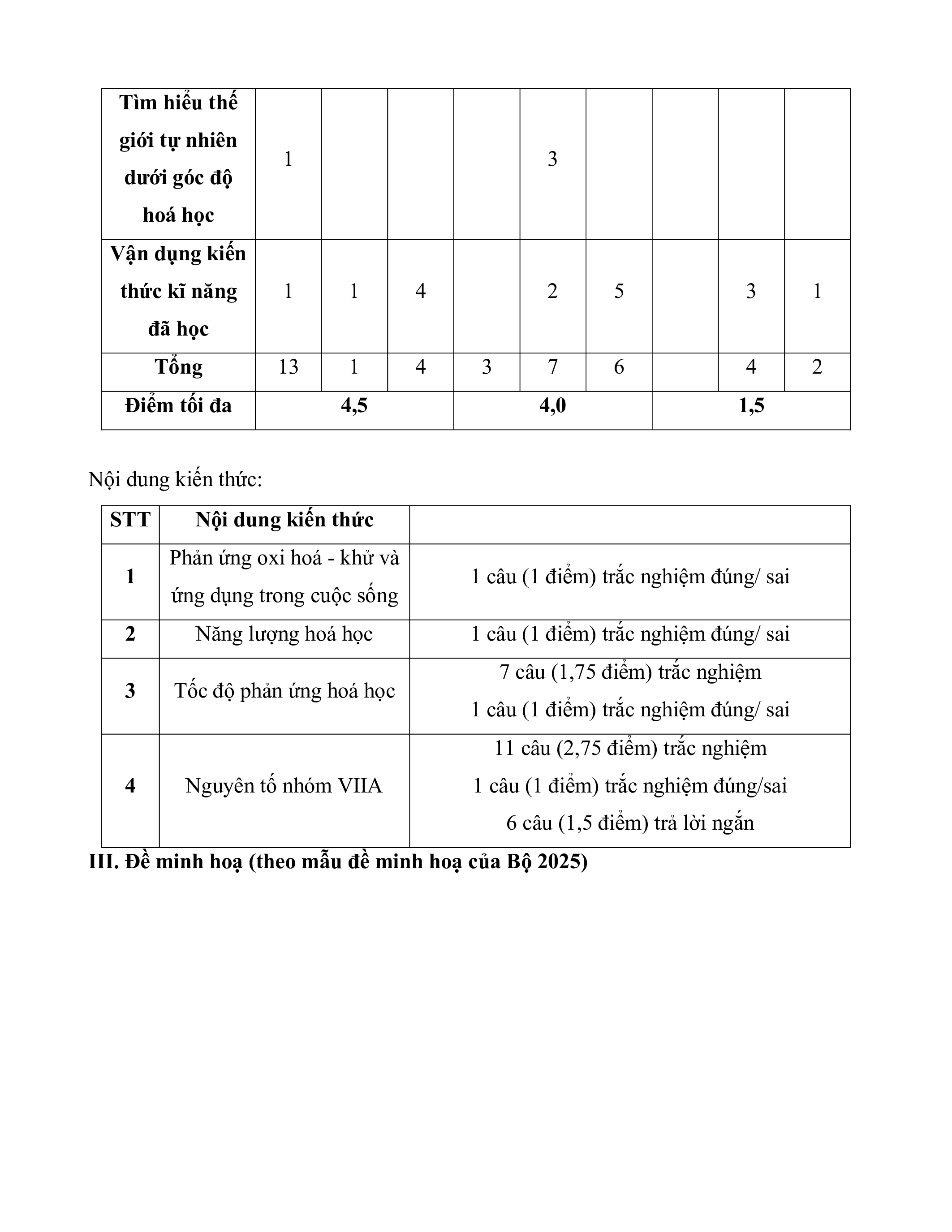 III. Đề minh hoạ (theo mẫu đề minh hoạ của Bộ 2025) Sở GD- ĐT …