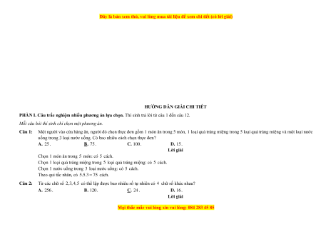 Đại số tổ hợp: quy tắc đếm, hoán vị, chỉnh hợp, tổ hợp, nhị thức Newton 3 TRẢ LỜI NGẮN 2