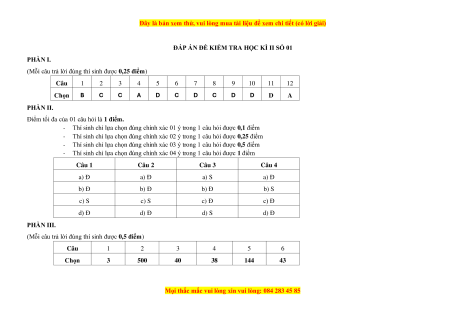 Thí sinh chỉ lựa chọn đúng chính xác 03 ý trong 1 câu hỏi được 0,5 điểm -