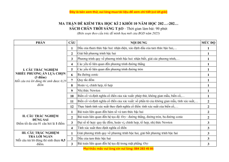 MA TRẬN ĐỀ KIỂM TRA HỌC KÌ 2 KHỐI 10 NĂM HỌC 202…-202…