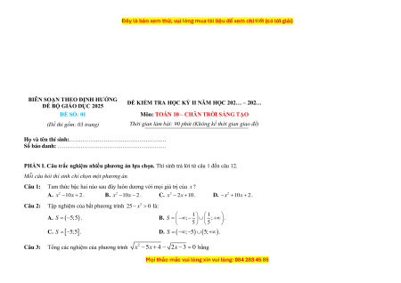 ĐỀ BỘ GIÁO DỤC 2025 – 202… ĐỀ SỐ: 01