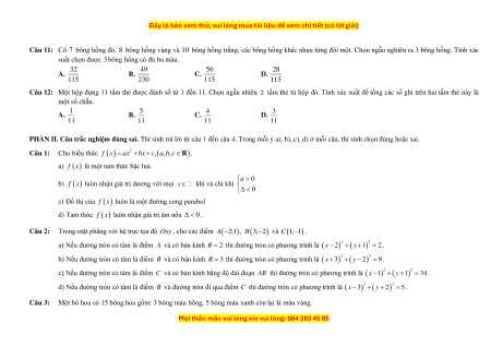 Bài toán liên quan đến hệ tọa độ Oxy : đường thẳng, đường tròn, ba đường conic 2 ĐÚNG SAI