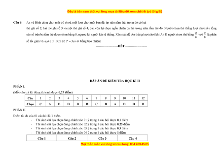 Mỗi câu trả lời đúng thí sinh được 0,25 7 Quy tắc đếm 1 điểm 8