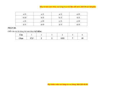 Thí sinh chỉ lựa chọn đúng chính xác 03 ý trong 1 câu hỏi được 0,5 điểm -