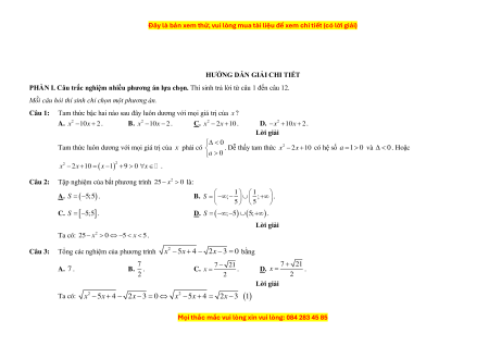 Giải phương trình quy về phương trình bậc hai, giải bất phương trình bậc hai 3 TRẢ LỜI NGẮN