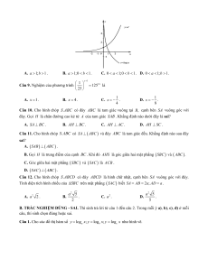 Câu 9. Nghiệm của phương trình 1 2 125 x là 25 A. x 1. B. x 4 . C. 1 x . D. 1 x . 4 8