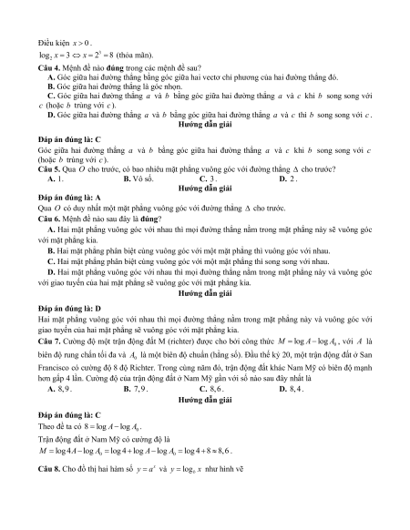 Câu 7. Cường độ một trận động đất M (richter) được cho bởi công thức M log A log A , với A là 0