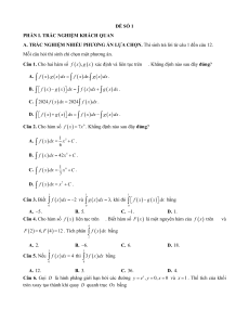 Hiểu tích phân của một C11 số hàm số sơ cấp - Tính được tích phân của một hàm số cho trước Vận dụng được