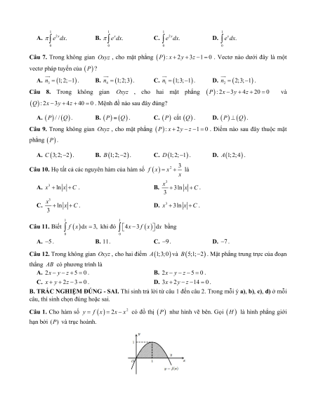 5 đề thi Toán 12 Giữa kì 2 Kết nối tri thức Cấu trúc mới (có tự luận)