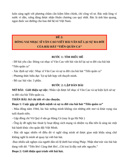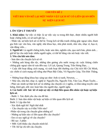 VIẾT BÀI VĂN KỂ LẠI MỘT NHÂN VẬT LỊCH SỬ CÓ LIÊN QUAN ĐẾN